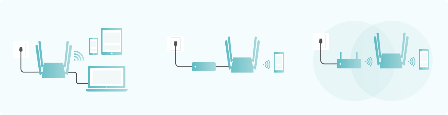 - Режим роутера (за замовчанням). Підключіть кабель Ethernet, щоб миттєво створити закриту Wi-Fi мережу та забезпечити інтернет-доступ для всіх Wi-Fi пристроїв.