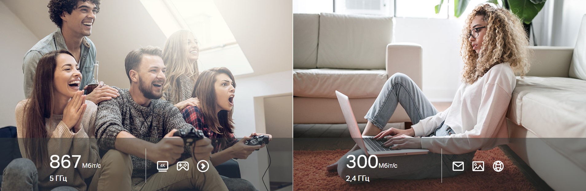 Wi-Fi зі швидкістю до 1200 Мбіт/с за стандартом 802.11ac укупі з технологією MU-MIMO** забезпечить надійний швидкісний обмін даними відразу з декількома пристроями й дозволить забути про затримки.