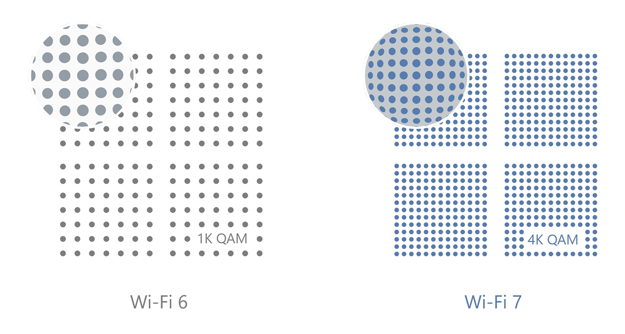 ![]() | 4096-QAM На 20% вища пропускна здатність у порівнянні з Wi-Fi 6. | |