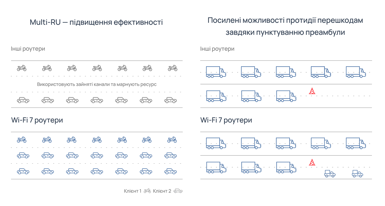 ![]() ʼʼʼʼʼ | Multi-RU — підвищення ефективності Ефективний розподіл каналів для десятків пристроїв одночасно. |