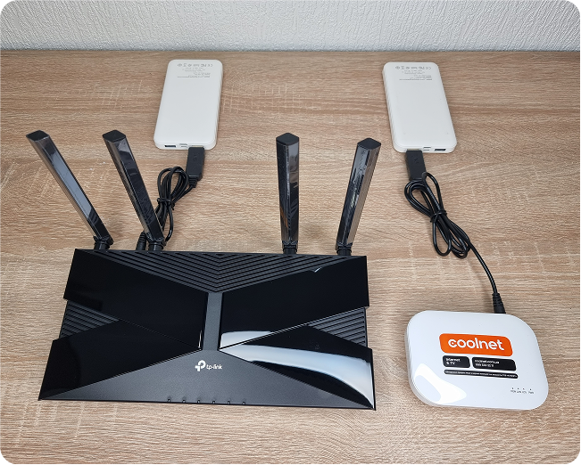 Внутрішні тести показали, що при живленні роутера та оптичного термінала від павербанка ємністю 10 400 мА·г комплект працював до 5 годин на одному заряді.