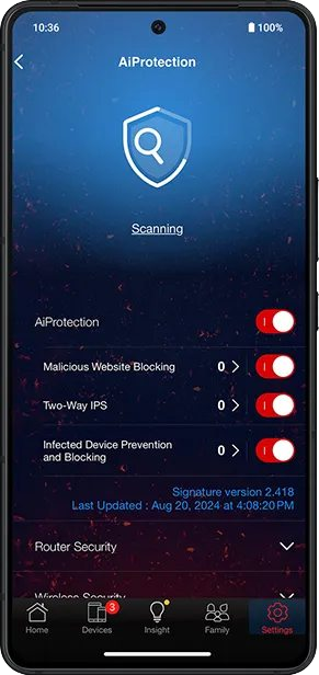 ![]() | AiProtection Фірмовий комплекс захисту AiProtection комерційного рівня разом із хмарною базою даних формують потужну й сучасну систему безпеки, яка цілодобово захищає вашу мережу від кіберзагроз, що постійно зростають. | |