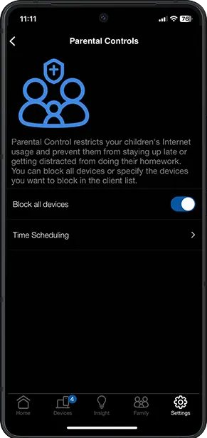![]() | Дитяча мережа Створіть мережу з окремим SSID, призначену спеціально для дітей, щоб легко керувати часом перебування в мережі без необхідності налаштовувати кожний пристрій окремо. | |